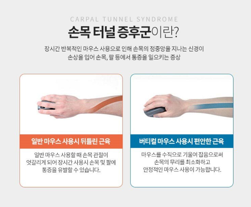 버티컬 마우스는 손목통증 완화에 좋기로 유명하죠.